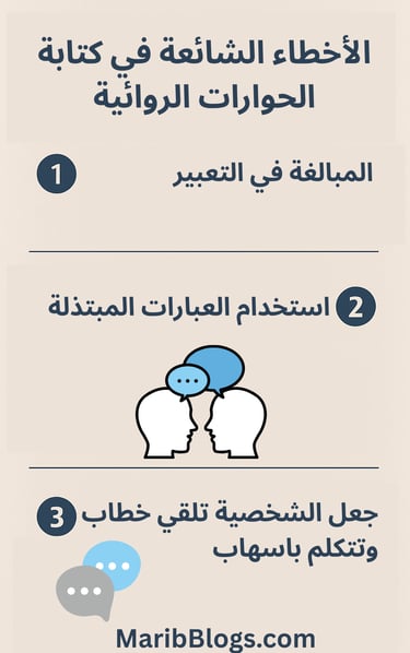 3. ما الأخطاء الشائعة في كتابة الحوارات؟
