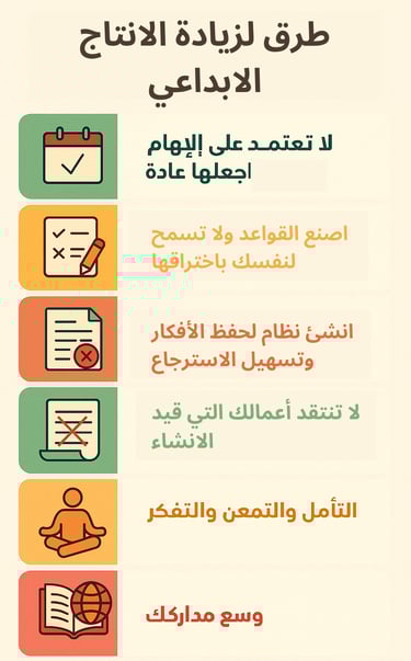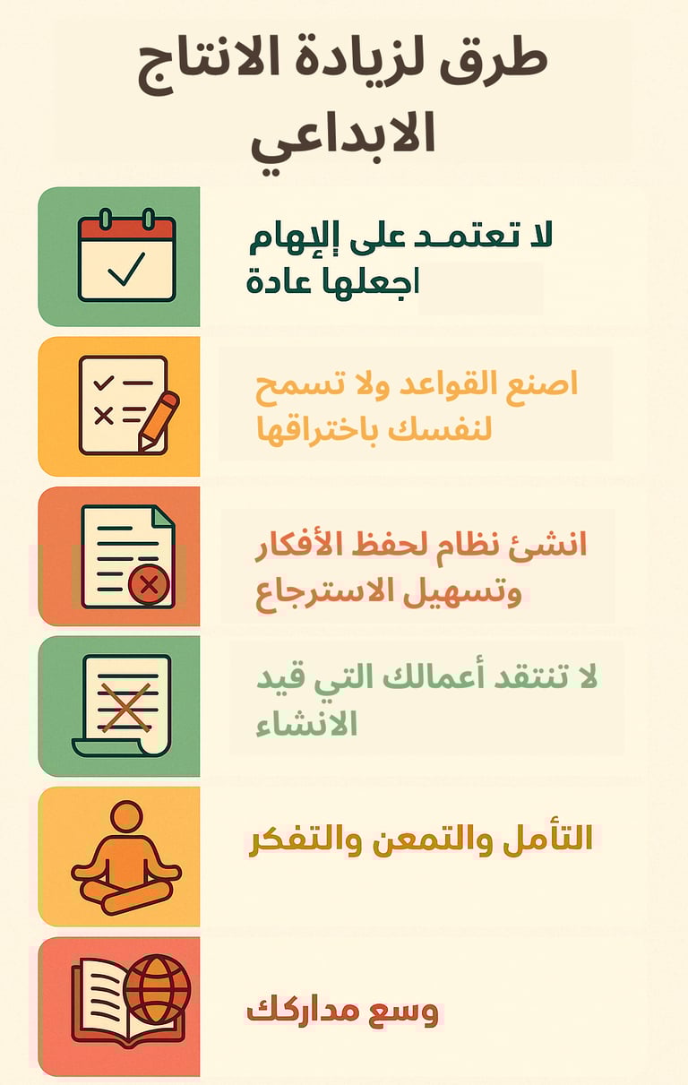 للمزيد عن علاقة توسيع مداركك مع الانتاج الإبداعي والغزارة الكتابية اطلع على مقال: الكتابة بين الموهبة والتعلّم: كيف تُصبح كاتبًا عبر القراءة؟