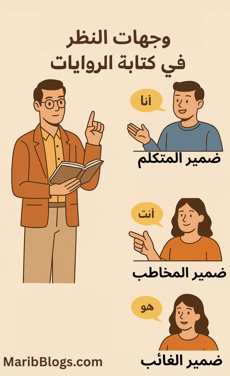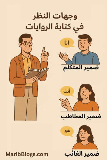 اختيار وجهة النظر المناسبة في الرواية من أهم قرارات الكاتب لأنها تحدد كيف سيتلقى القارئ الأحداث. في هذا المقال نشرح وجهات النظر في الكتابة الروائية، بدءًا من ضمير المتكلم الحاضر والماضي، إلى ضمير الغائب القريب والبعيد والمتعدد. سنتحدث عن مزايا كل نوع، وكيفية توظيفه في السرد، وما الأخطاء التي يقع فيه